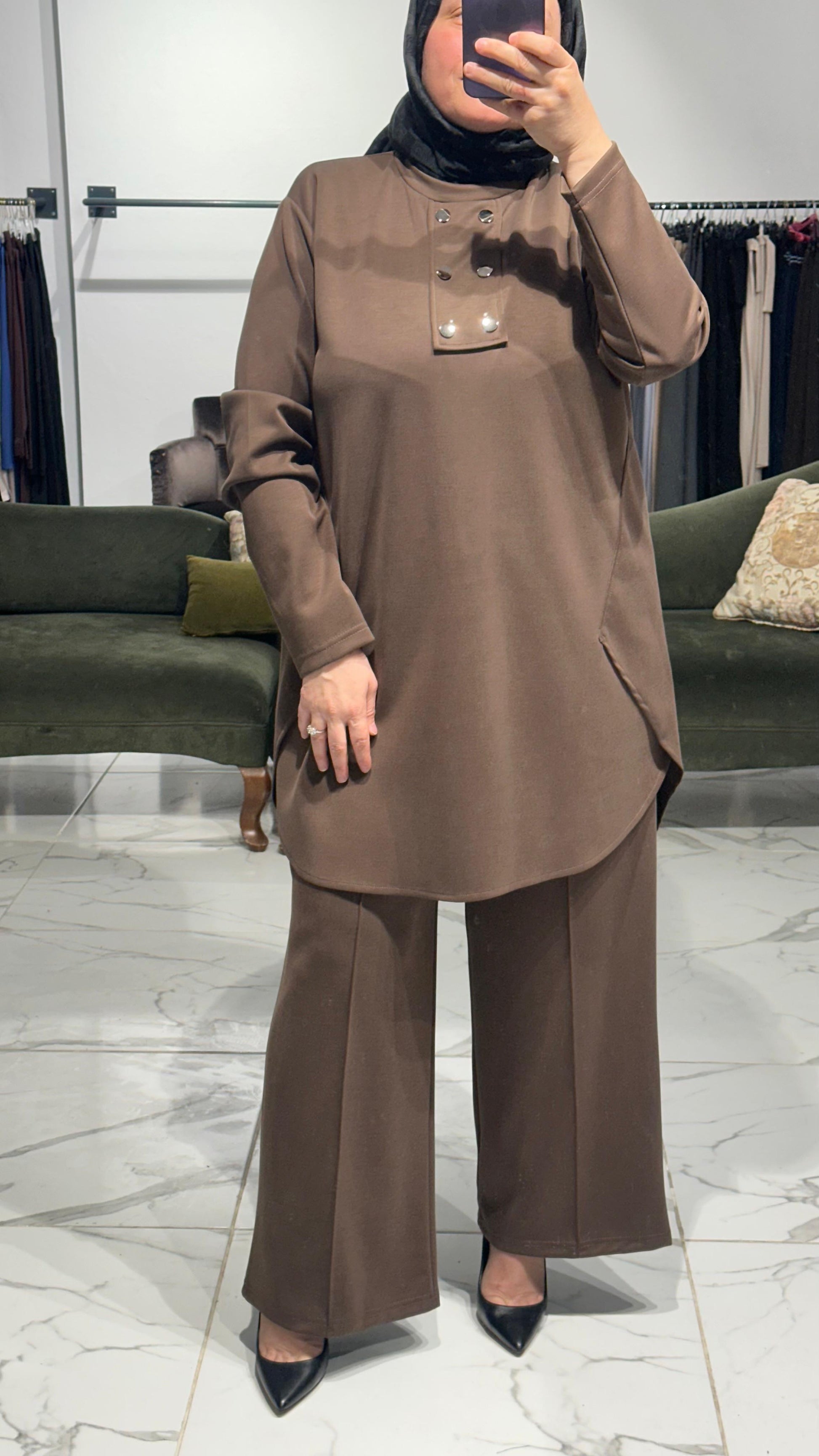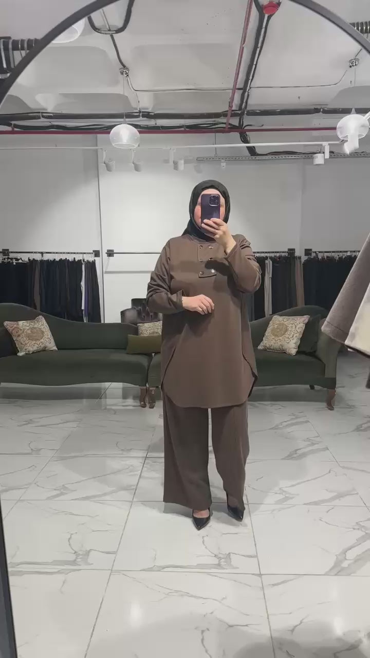 Yanı Kapaklı Ön Düğme Detay Pantolon Takım